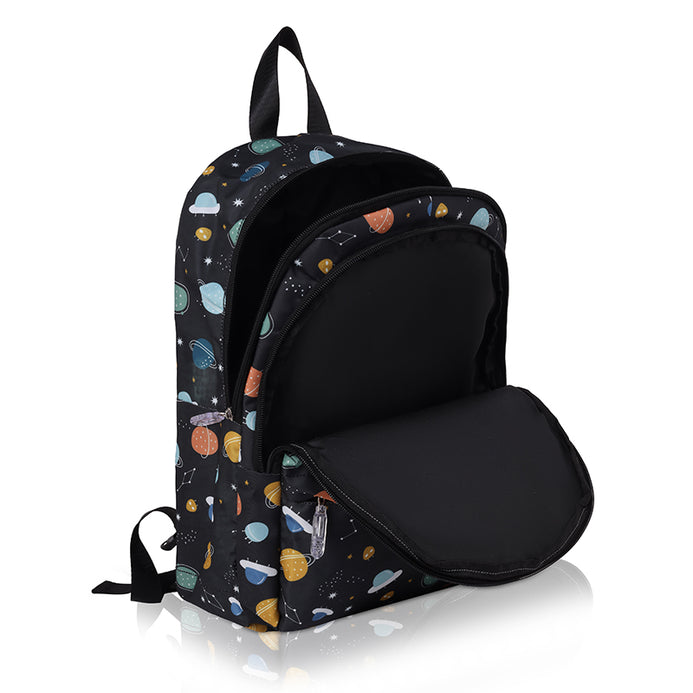 The front organizer pocket has special slots for pencils and small keepsakes, so they’re always ready for their next big idea.