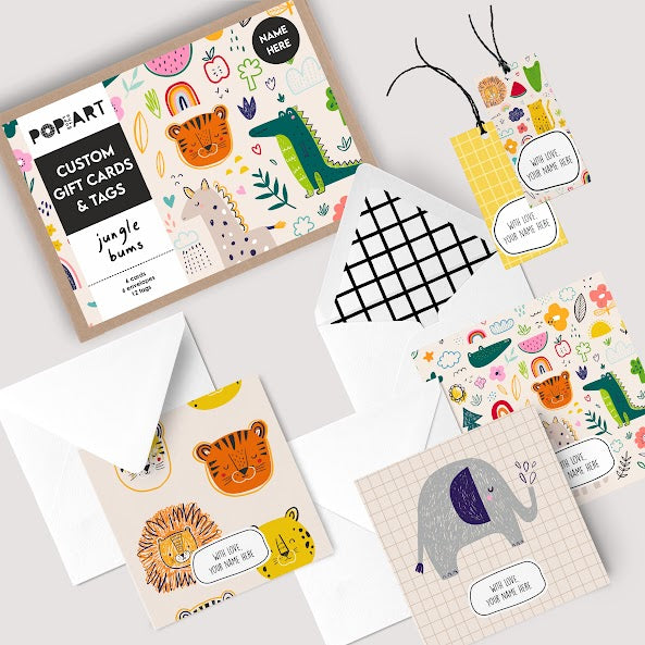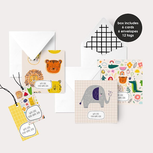 Our personalised stationery set includes greeting cards, envelopes, and gift tags for children to use. These customised sets are for your most important thank yous and wishes, and also make the perfect gift for a kid on any occasion including their birthday!