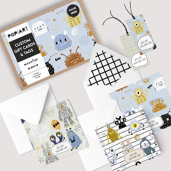 Our personalised stationery set includes greeting cards, envelopes, and gift tags for children to use. These customised sets are for your most important thank yous and wishes, and also make the perfect gift for a kid on any occasion including their birthday!