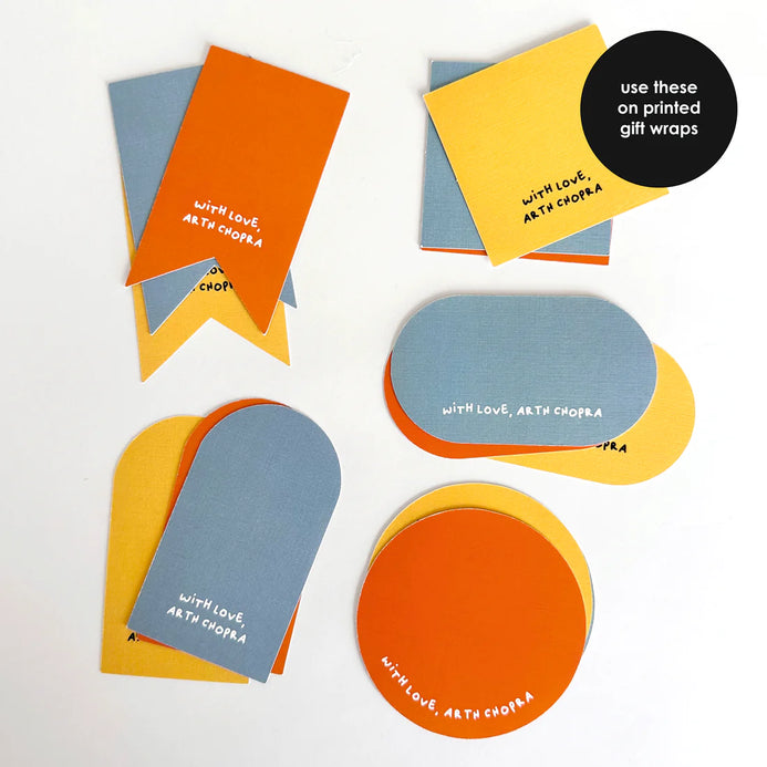 These cute stick-on tags are the perfect solution for your gift wrapping needs. Printed and solid coloured, these tags can be used on both solid wrapping papers or printed wrapping papers. You can also choose one on which you want to write a note, or not, making them easy and versatile!