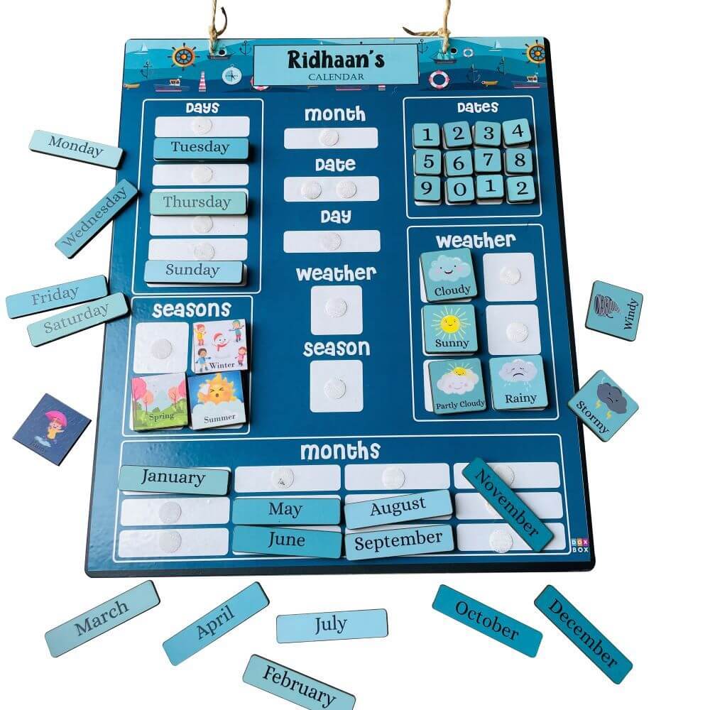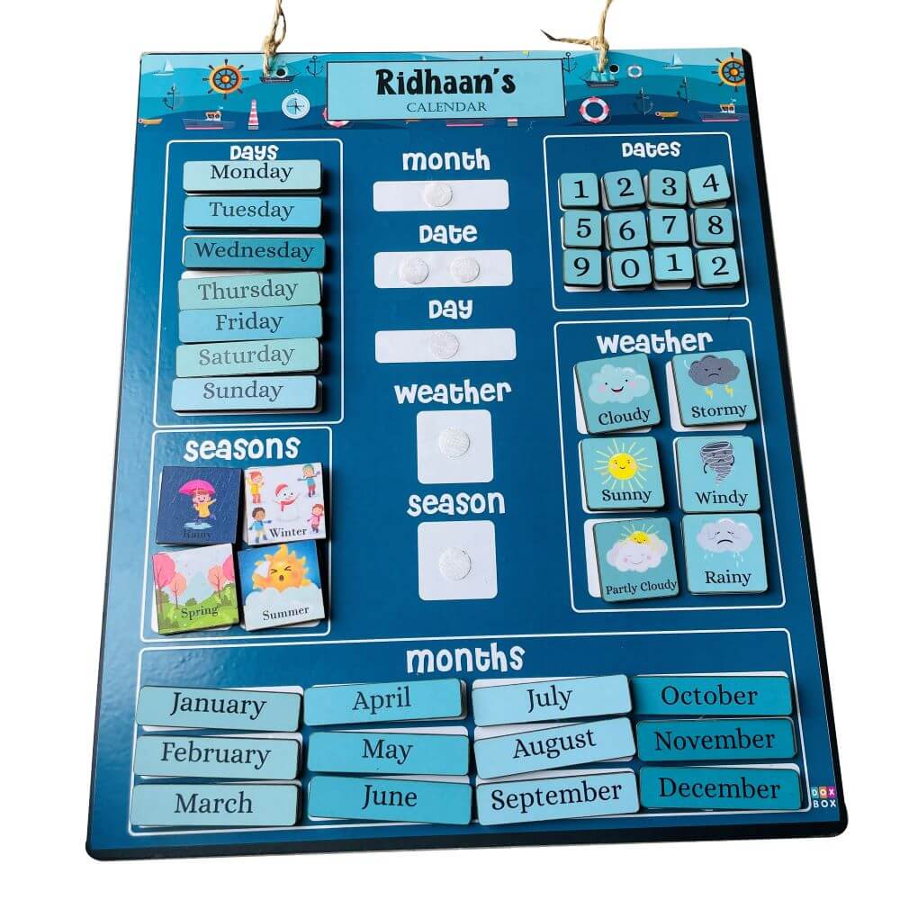 Teaching kids importance of changes each day brings is very important in today's time when kids are used to digital calender's. This is a fun calendar activity which covers the date, days of the week, months , seasons and weather. The calendar has all the days of the weeks, months in the year, 4 seasons, 6 weather conditions and days cutouts which needs to be pasted in today's column to ascertain whats the date, month, climate and season on the present day. Its a great way to teach the days and months to the kids.
