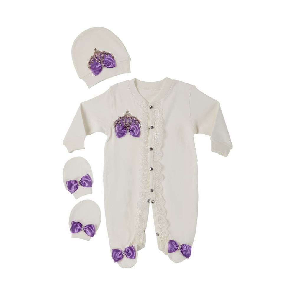 • 3 PC Set includes - Full body suit romper with Crystal motif , Cap with motif , mittens