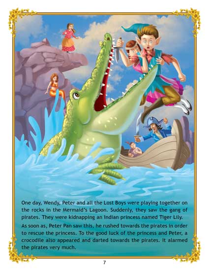 Peter Pan tells the story of the Darling children’s journey to the magical islands of Neverland with Peter Pan and his fairy friend Tinker Bell. ‘Uncle Moon’s Fairy Tales – Peter Pan’ is well-loved by all. Adorned with charming illustrations, retold in easy language, this is a beautiful book to treasure. • 32 pages • Ideal for age-group 2-6 years • Amazing illustrations • Colourful cover • Inculcates reading habit Presented through captivating illustrations, this is an excellent version of a famous fairy tale that will be loved by children everywhere. Easy-to-understand text ensures that kids enjoy reading it and improve their language skills as well.