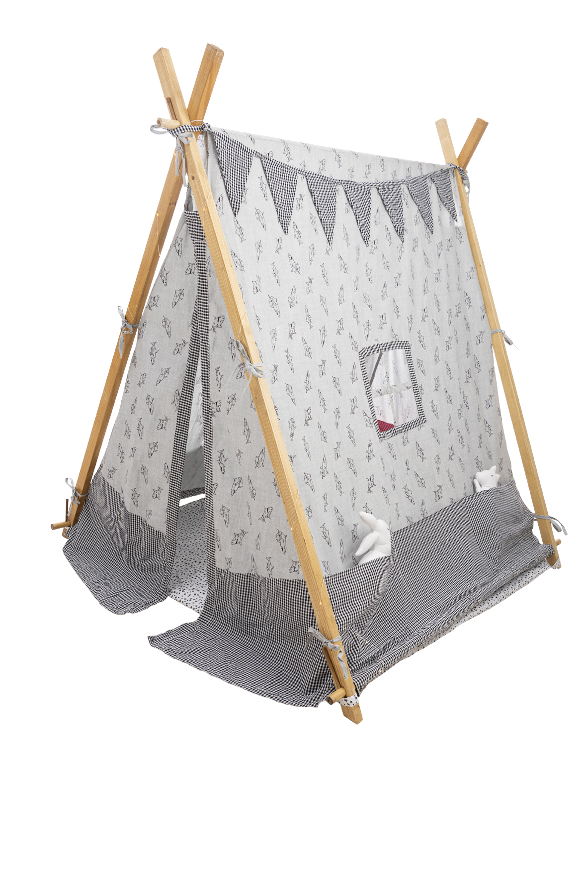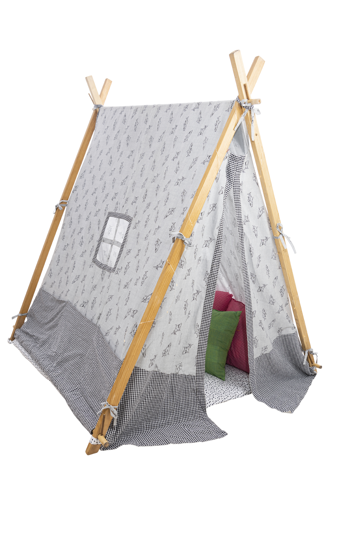 Includes: PINE WOOD DOWELS, PLAYTENTS STITCHED FABRIC, MATTRESS, FERRY FIGHTS.