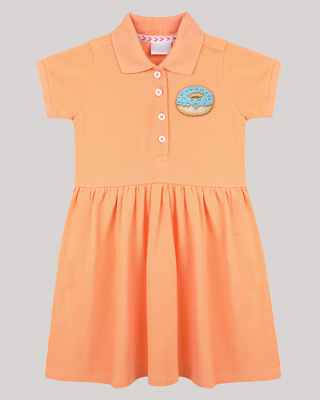 Polo Dress With Gathers At Waist And Donut Motif