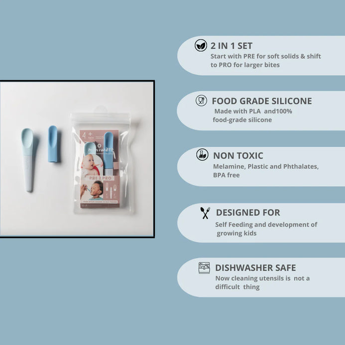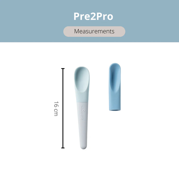 Go from Pre-solids all the way to Pro level self-feeding! Introducing Pre2Pro - our new innovative feeding spoons! Following the same " grow with your minime" design philosophy, Pre 2 Pro is a perfect feeding utensil to support your baby's growth during the first feeding phases of their lives. The interchangeable silicone heads are convenient to switch when you begin feeding different foods and support the growing appetite of your little one. Modern design and attention to the details will make the mealtime even more enjoyable for both you and your minime!
