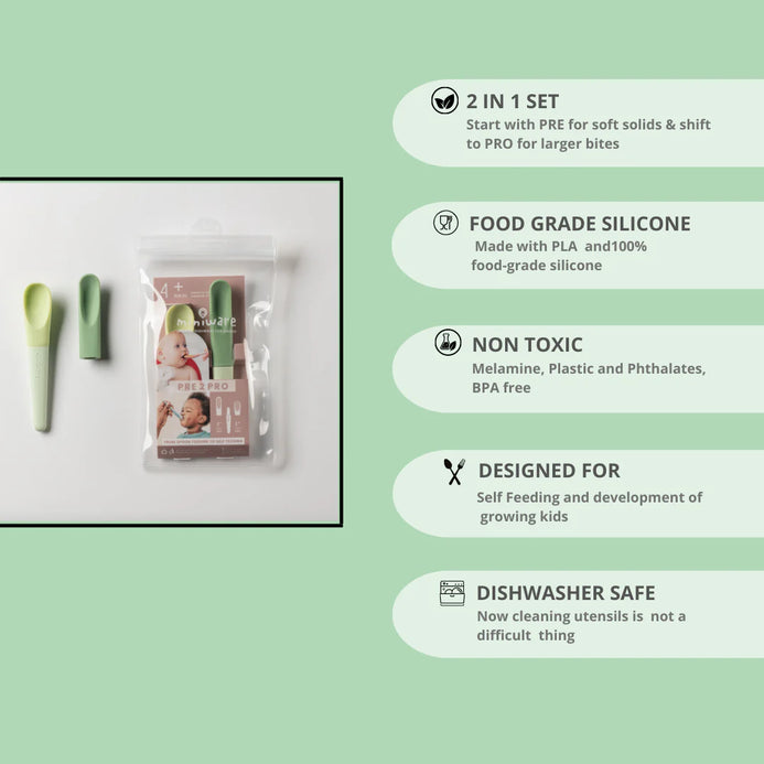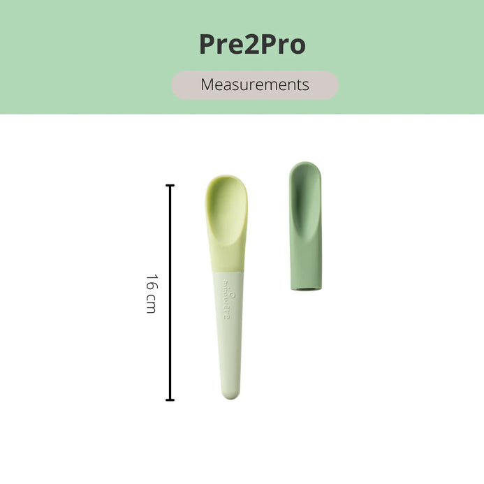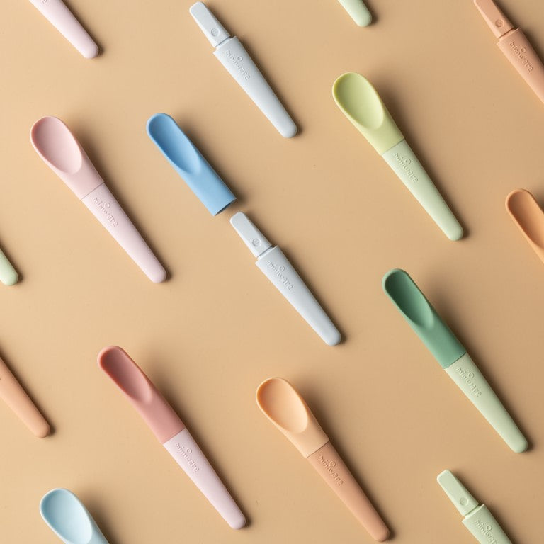 Go from Pre-solids all the way to Pro level self-feeding! Introducing Pre2Pro - our new innovative feeding spoons! Following the same " grow with your minime" design philosophy, Pre 2 Pro is a perfect feeding utensil to support your baby's growth during the first feeding phases of their lives. The interchangeable silicone heads are convenient to switch when you begin feeding different foods and support the growing appetite of your little one. Modern design and attention to the details will make the mealtime even more enjoyable for both you and your minime!