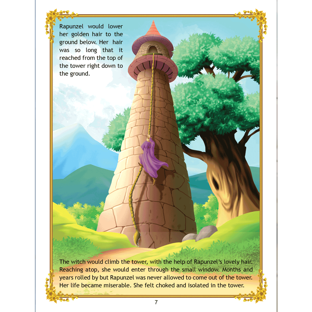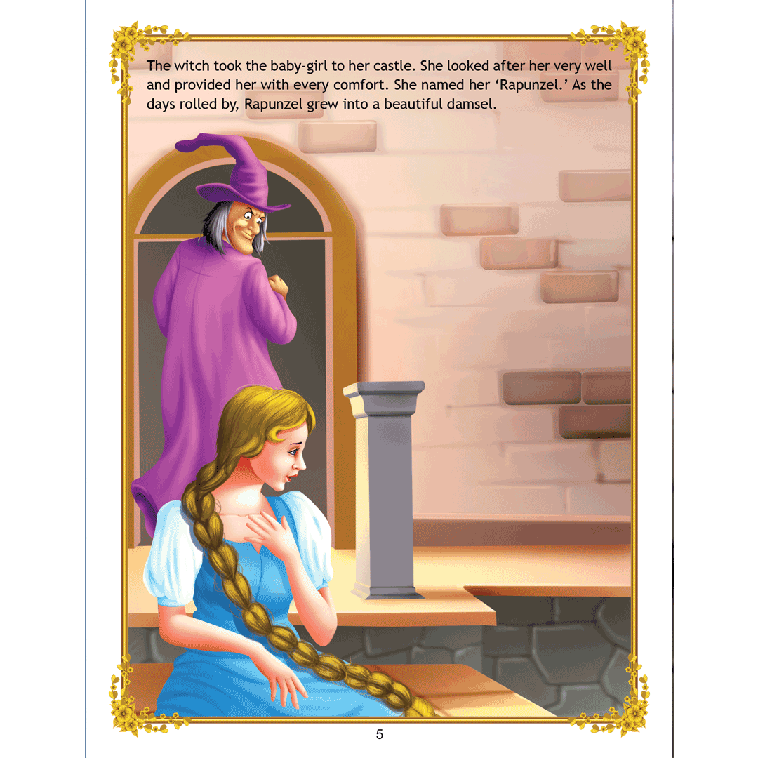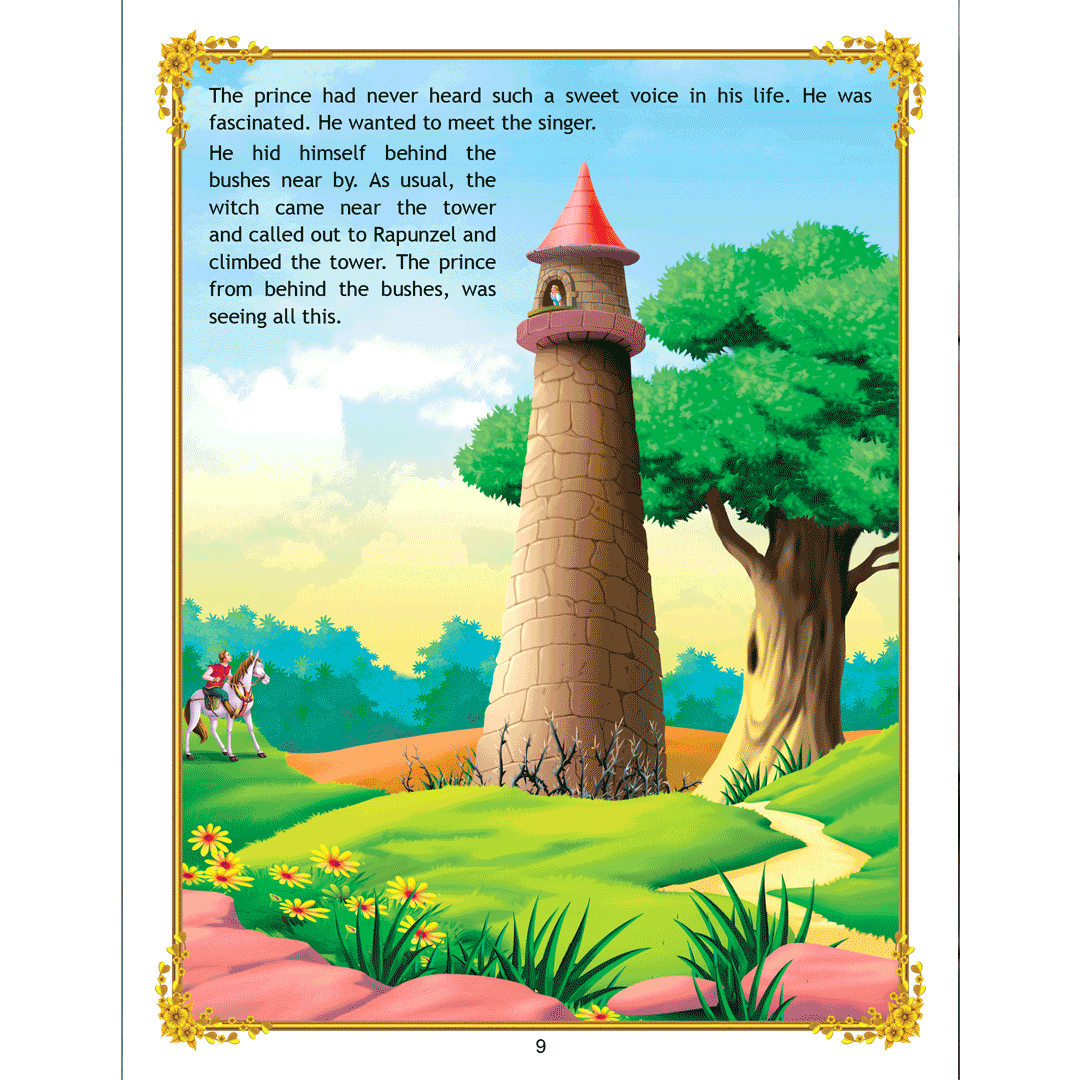 ‘Rapunzel’ is a story of a beautiful damsel with long golden hair who is locked in a tower by an evil witch. She lets down her long beautiful hair for the prince to climb and rescue her. Adorned with charming illustrations, retold in easy language, this is a beautiful book to treasure. • 16 pages • Ideal for age-group 2-6 years • Amazing illustrations • Colourful cover • Inculcates reading habit This classic retold is sure to capture all readers’ interest, page after page, as they take their imagination on a magical journey. Easy-to-understand text ensures that kids enjoy reading it and improve their language skills as well.