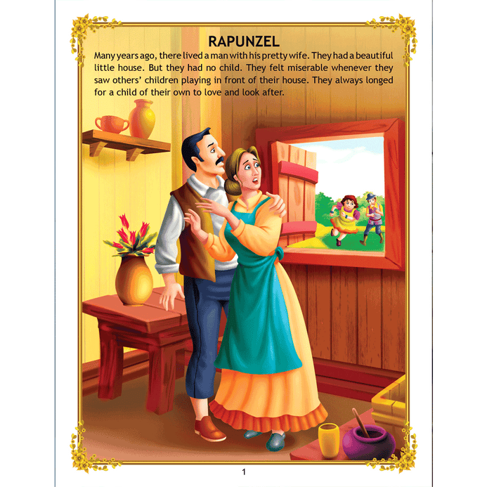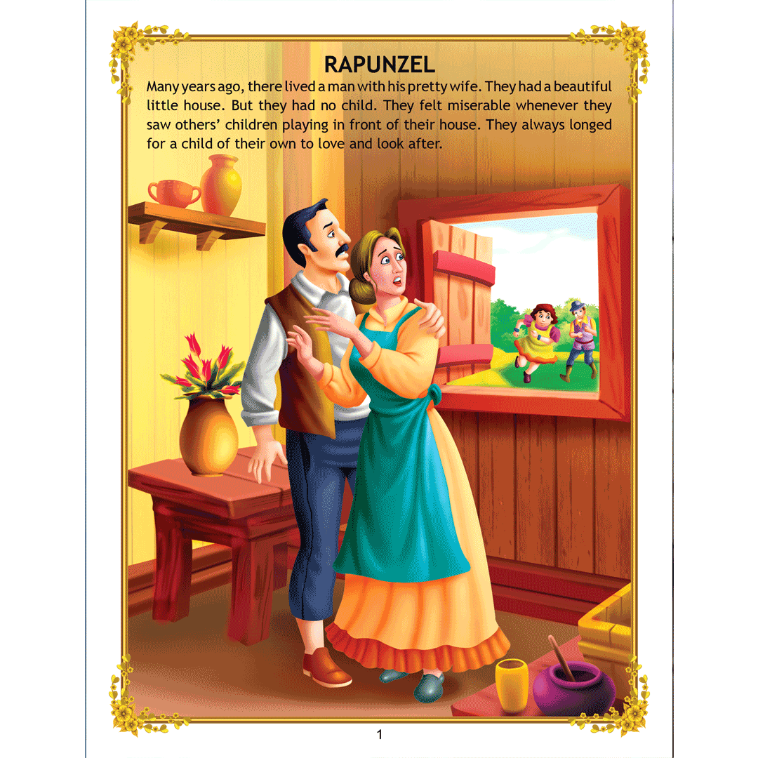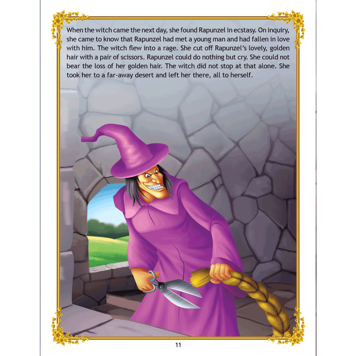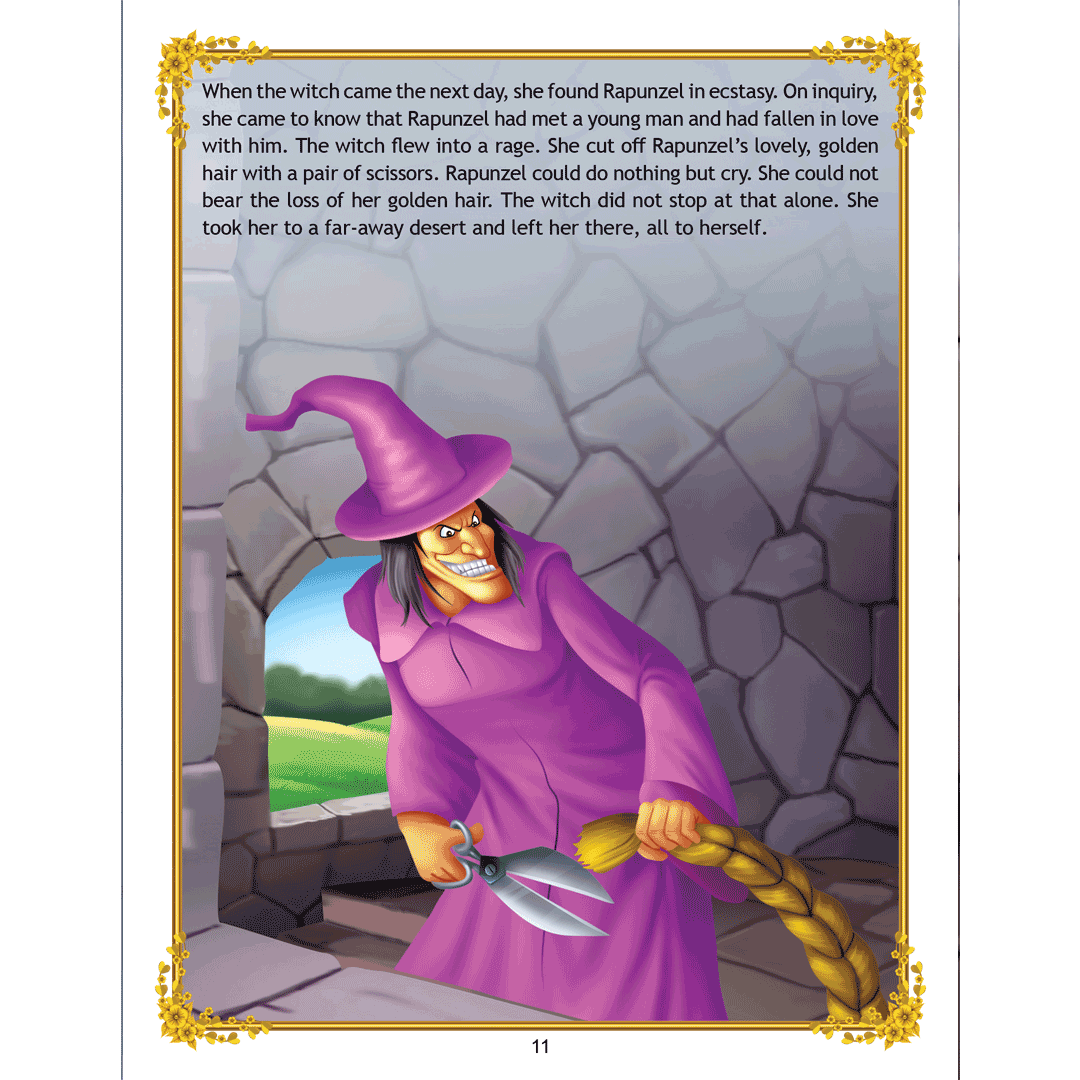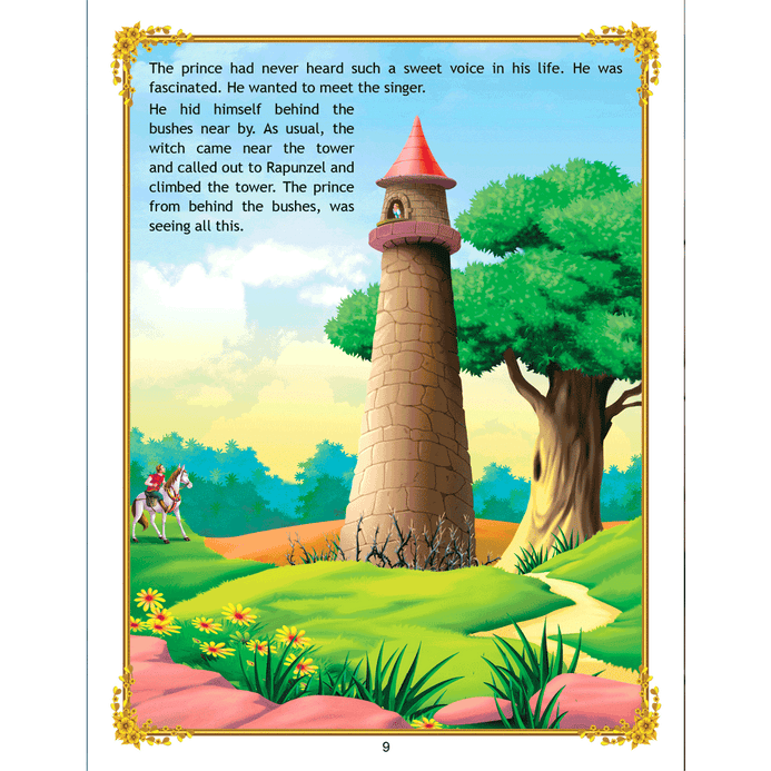‘Rapunzel’ is a story of a beautiful damsel with long golden hair who is locked in a tower by an evil witch. She lets down her long beautiful hair for the prince to climb and rescue her. Adorned with charming illustrations, retold in easy language, this is a beautiful book to treasure. • 16 pages • Ideal for age-group 2-6 years • Amazing illustrations • Colourful cover • Inculcates reading habit This classic retold is sure to capture all readers’ interest, page after page, as they take their imagination on a magical journey. Easy-to-understand text ensures that kids enjoy reading it and improve their language skills as well.