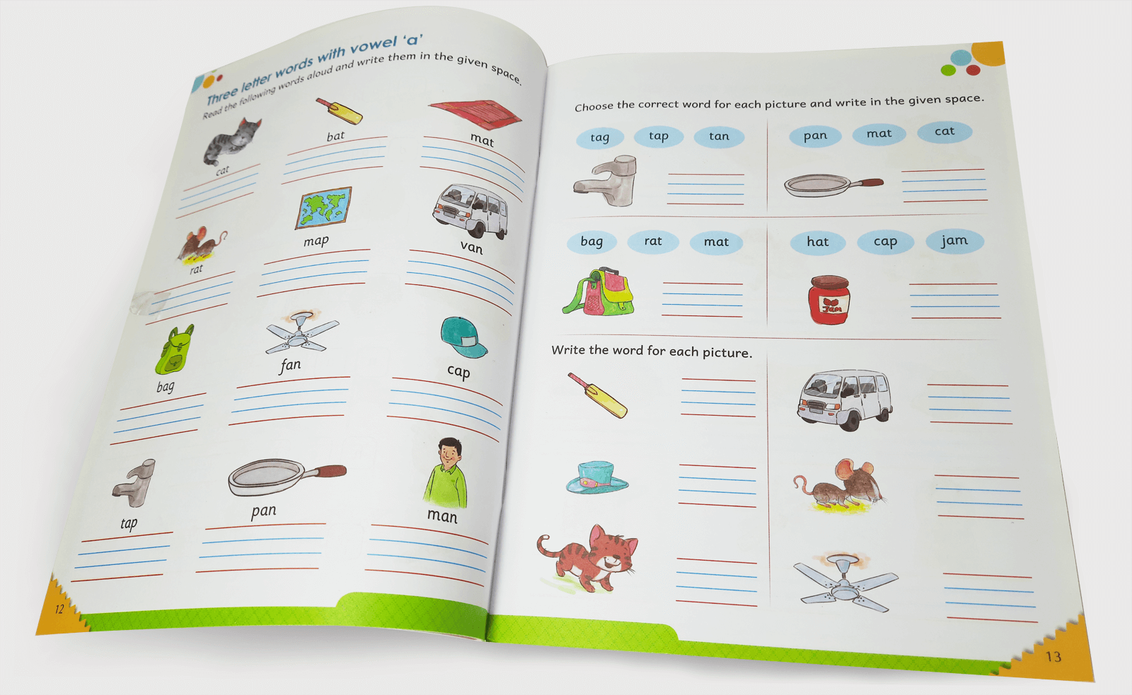 A combined activity book to write and practice English alphabets and numbers, colouring, and more early learning activities. The book allows lot of practice and readies the child for later classes.