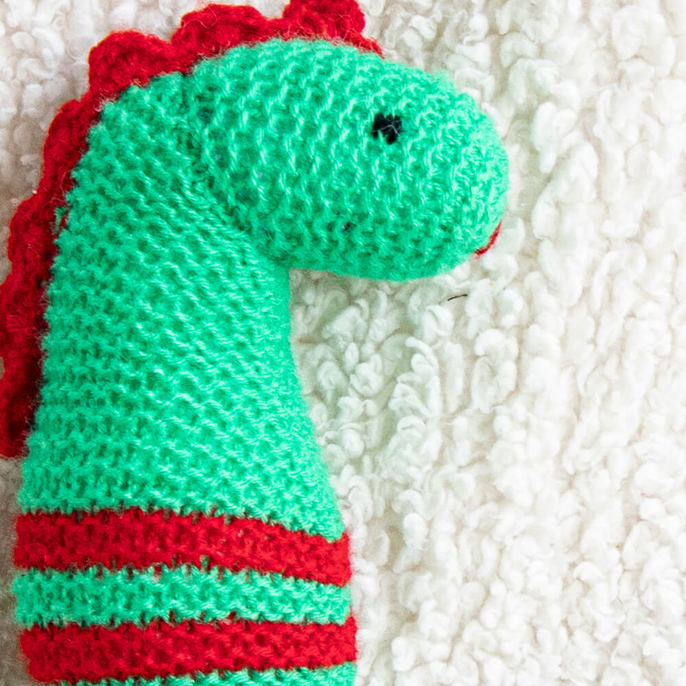 - SIZE & MAKE- One adorable soft toy, hand-knitted from premium baby wool, Integrated rattle sounds. 19 cm length (approx.) Handmade with care in India.