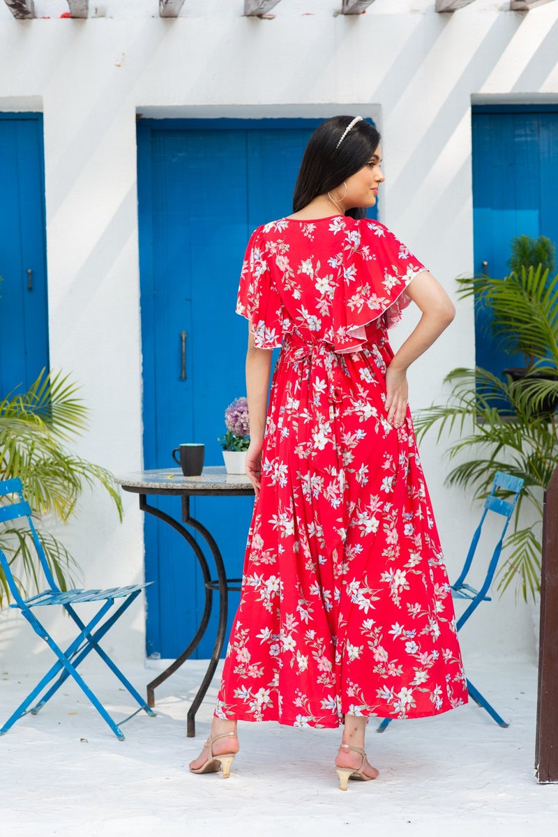 Scarlet Flowy Maternity & Nursing Flap Dress