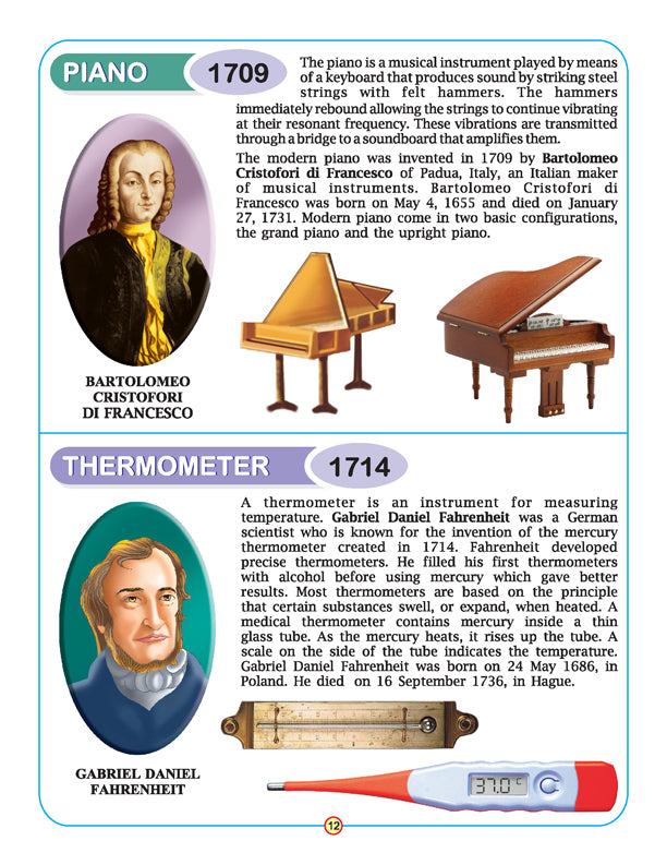 ‘Science and Inventions’ is an attractive and informational book for children. This book introduces children to a variety of different inventions and discoveries that are relevant to the present term. The information given is good and easy to read. • Age-group 9-12 years • 320 pages • Pleasant images • Easy-to-read • Colourful pictorial presentation • Nice cover design This book provides children a good starting point for explaining many inventions that changed the world and help children understand their surroundings. It is a perfect gift for children with an interest in science.