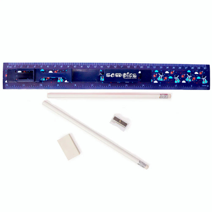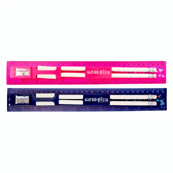 Made especially for teens & tots, the Rule the Ruler set comes with a complete stationery essential required for your little munchkin's mathematics class. Pencils, sharpeners, and erasers are fitted on the ruler itself. No need to waste time finding stationery now!