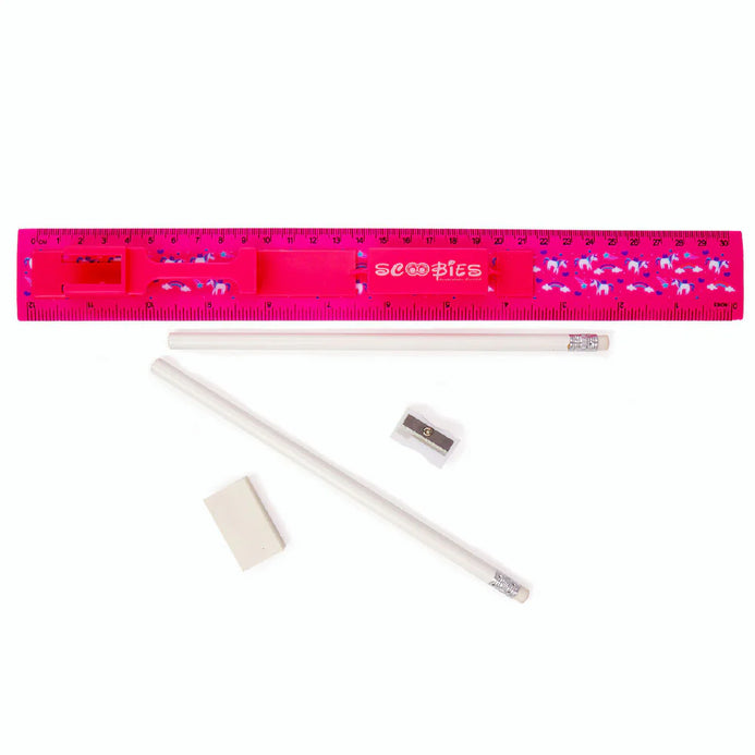 - Design - Pink colored ruler comes with a Unicorn design all over, accompanied by other cute elements like rainbow, stars, and more.