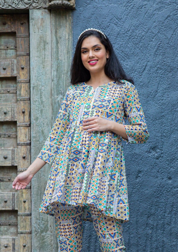 Serene Abstract Comfy White Maternity & Nursing Top