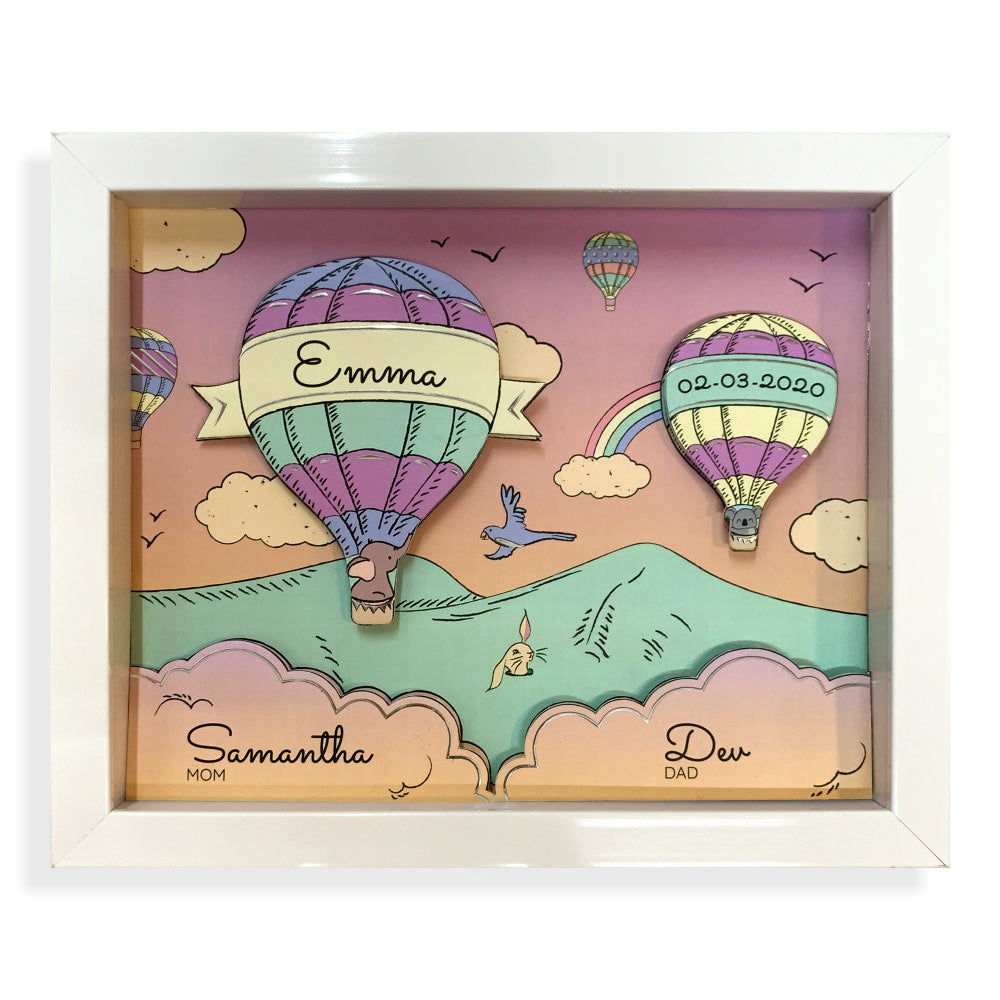 Personalised Shadow Box Frame with Silver Foil | Orchid Hot Air Balloon