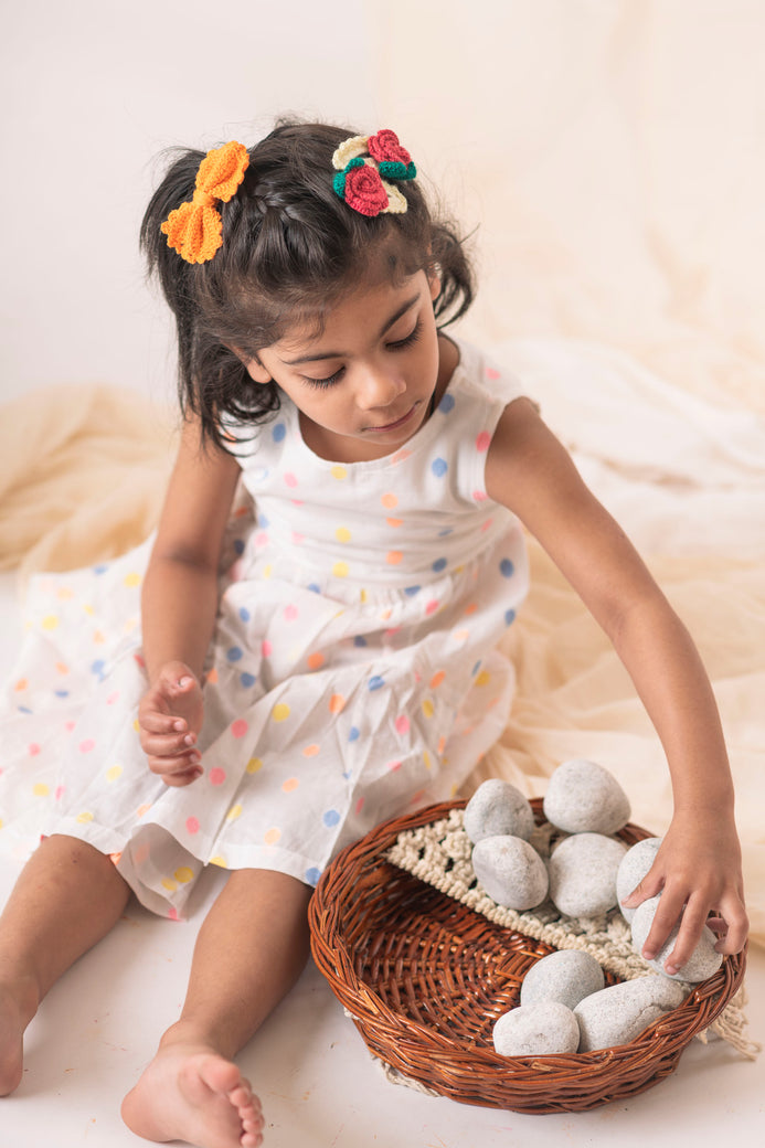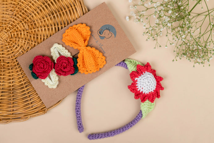 Introducing our delightful collection of crochet hair accessories for kids! Designed with playful charm and comfort in mind, each piece is handcrafted to add a touch of whimsy to your little one's hairstyle. From vibrant flower clips to adorable headbands, our crochet accessories are perfect for adding a pop of color and personality to any outfit. Made with soft, child-friendly materials, they are gentle on delicate hair and skin, ensuring your little trendsetter stays stylish and happy all day long. Explore our enchanting range and let your child's imagination soar with our fun and fabulous crochet hair accessories.