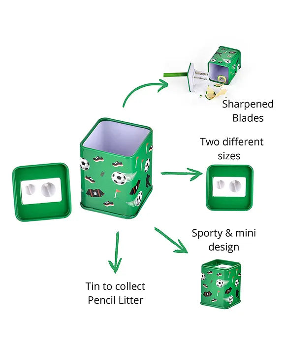 - Portable - Easy-to-carry sharpener comes with portable tin. Collect pencil shavings till you find a bin. No mess!