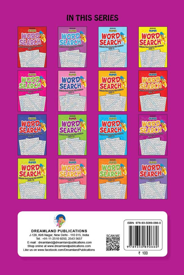 ‘Super Word Search’ is a fantastic book of word search puzzles on various topics. This book will provide hours of entertainment, help the puzzlers enhance their attention, general knowledge, language, and visual search. • Perfect for ages 6-15 • 192 pages • Interesting over 150 topics • Easy-to-read format • Solutions included Ideal for all word-search fans, with over 150 puzzles and solutions provided in easy-to-read format this book is both challenging and enjoyable. It makes a great gift for all to put their observation and word-finding skills to the ultimate test.