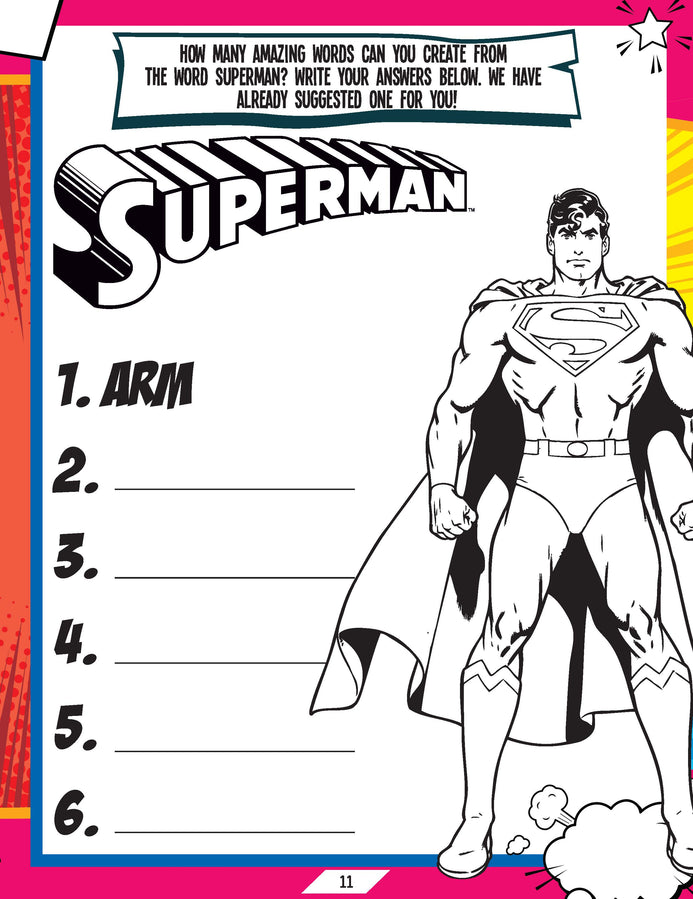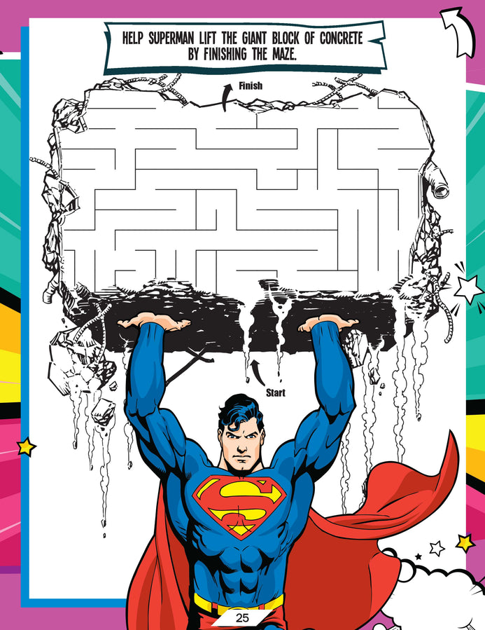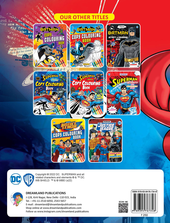 Let the children enjoy some mind-blowing adventures with their super friend Superman through the "Superman Activity and Colouring Book". Exclusively designed for children, this book includes exciting colouring pages, interesting activities and stickers. This book will keep kids entertained for hours at home or on the go with mazes, puzzles, colouring pages, and educational activities.
