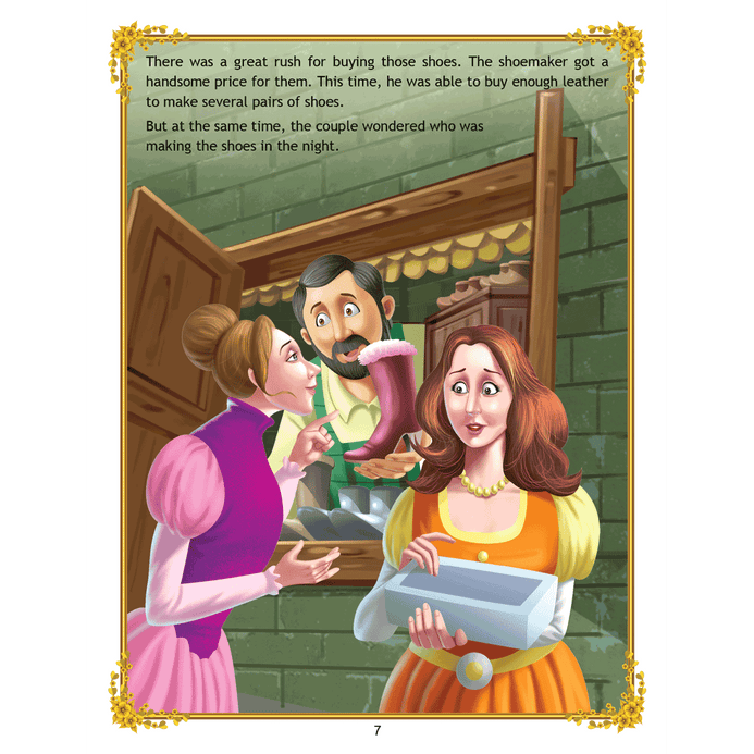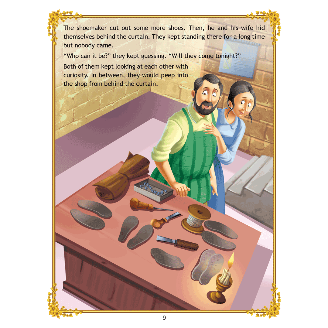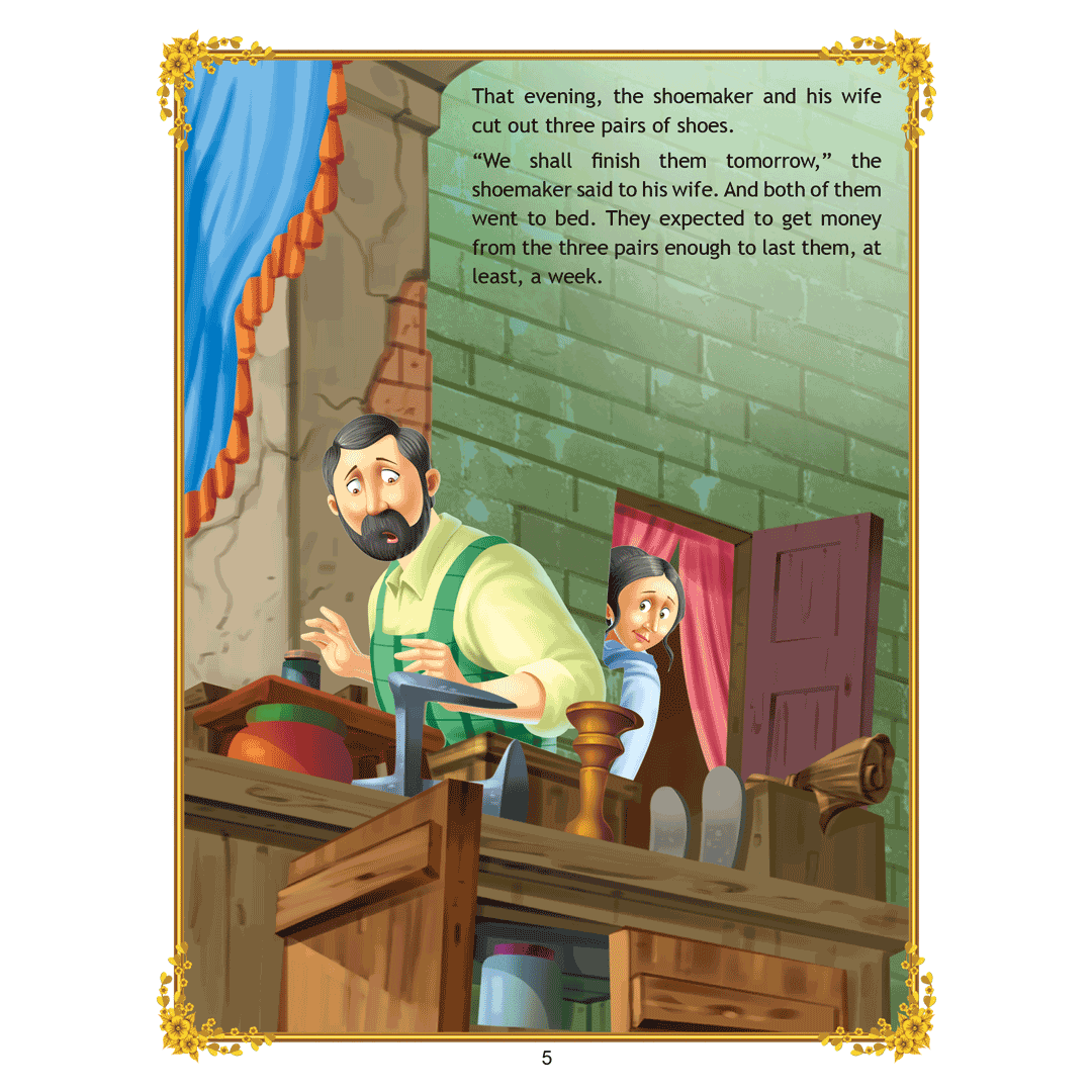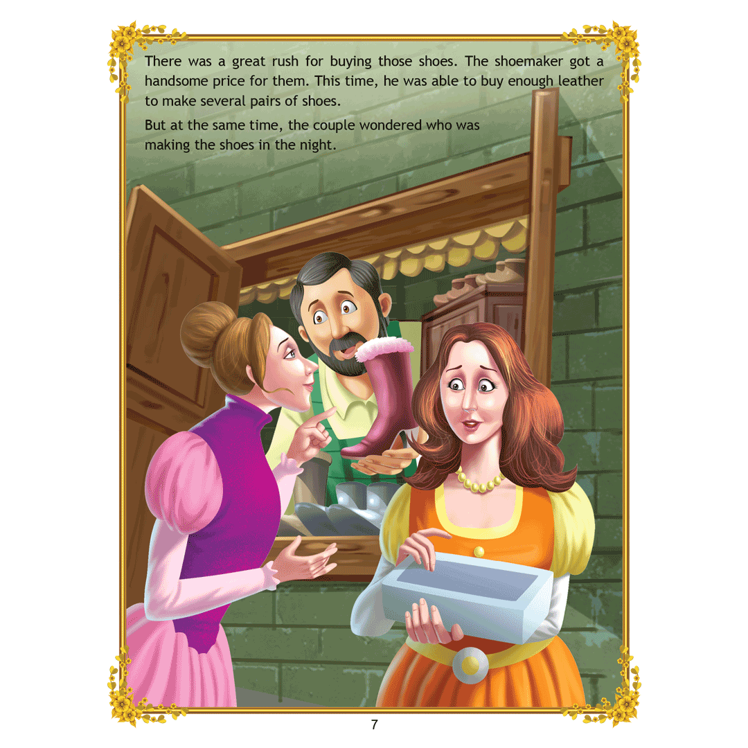 ‘The Elves and the Shoemaker’ – a short but very sweet story of a poor shoemaker who receives much-needed help from young helpful elves, and in return the shoemaker’s wife stitches cute clothes for them as a gift. Designed to entertain, educate, and engage young readers, this storybook teaches a gentle lesson that we must be thankful for all the help we receive from others. • 16 pages • Ideal for age-group 2-6 years • Amazing illustrations • Colourful cover • Inculcates reading habit This storybook is sure to become a favourite of all readers. Filled with emotions, this story will enchant young readers and listeners. Easy-to-understand text ensures that kids enjoy reading it and improve their language skills as well.