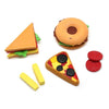 Bagels with stuffing , Cheese Sandwich, pizza with olives and fries in the side.