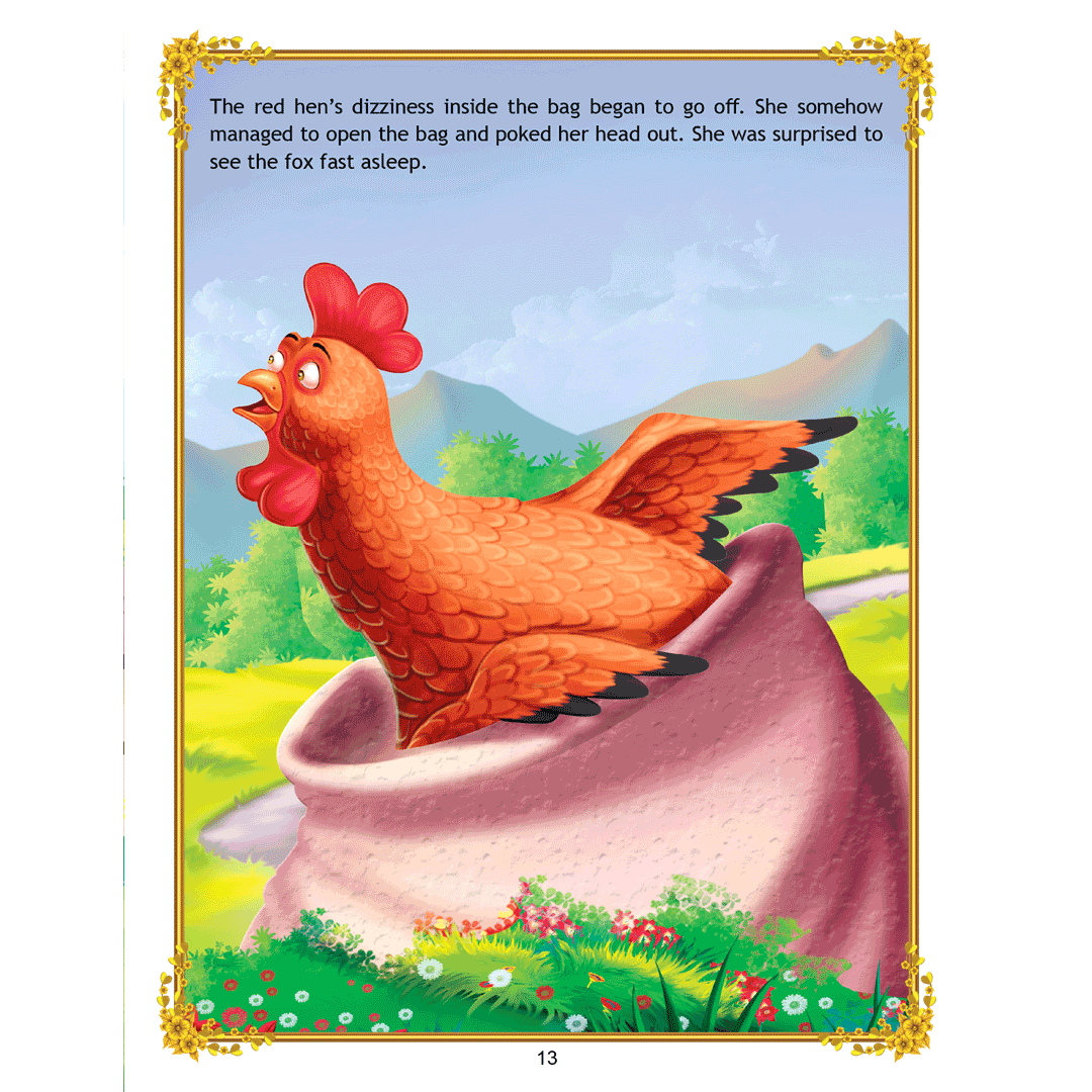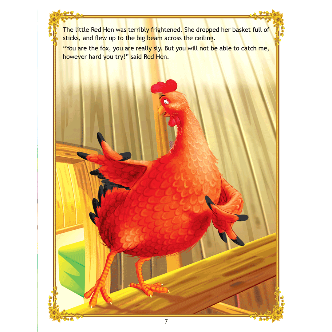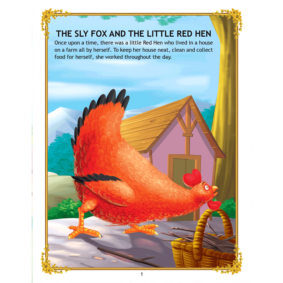 ‘The Sly Fox and the Little Red Hen’ is a story of a little red hen and a sly fox who always thinks of ways to catch the hen and make a tasty meal out of her. Adorned with charming illustrations, retold in easy language, this interesting story teaches a moral lesson that one should use their wit and calmly face the dangers. • 16 pages • Ideal for age-group 2-6 years • Amazing illustrations • Colourful cover • Inculcates reading habit This storybook is sure to become a favourite of all readers. Filled with humour and adventure it will enchant young readers and listeners. Easy-to-understand text ensures that kids enjoy reading it and improve their language skills as well.