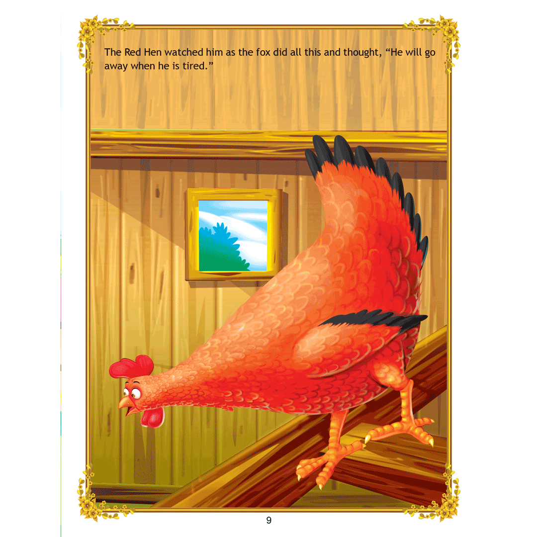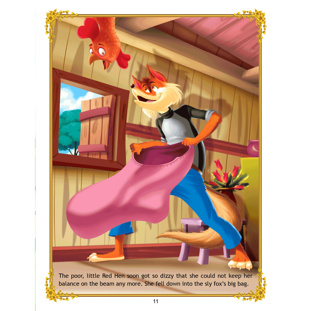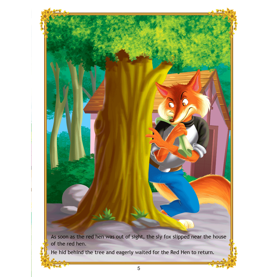 ‘The Sly Fox and the Little Red Hen’ is a story of a little red hen and a sly fox who always thinks of ways to catch the hen and make a tasty meal out of her. Adorned with charming illustrations, retold in easy language, this interesting story teaches a moral lesson that one should use their wit and calmly face the dangers. • 16 pages • Ideal for age-group 2-6 years • Amazing illustrations • Colourful cover • Inculcates reading habit This storybook is sure to become a favourite of all readers. Filled with humour and adventure it will enchant young readers and listeners. Easy-to-understand text ensures that kids enjoy reading it and improve their language skills as well.