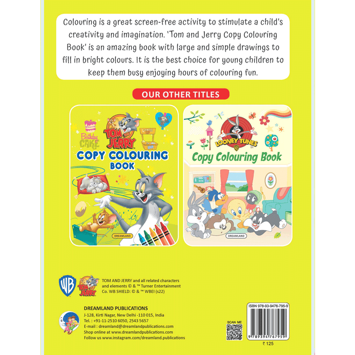 Colouring is a great screen-free activity to stimulate a child’s creativity and imagination. ‘Tom and Jerry Copy Colouring Book’ is an amazing book with large and simple drawings to fill in bright colours. It is the best choice for young children to keep them busy enjoying hours of colouring fun.