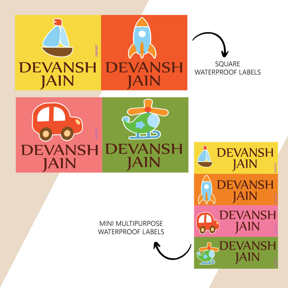 For all your labelling needs from bottles, tiffins to everything big and small we have you covered! The new combo set comes with two sticker sizes, that will have all your kids items labeled and ready for school! And the added bonus they are all WATERPROOF!