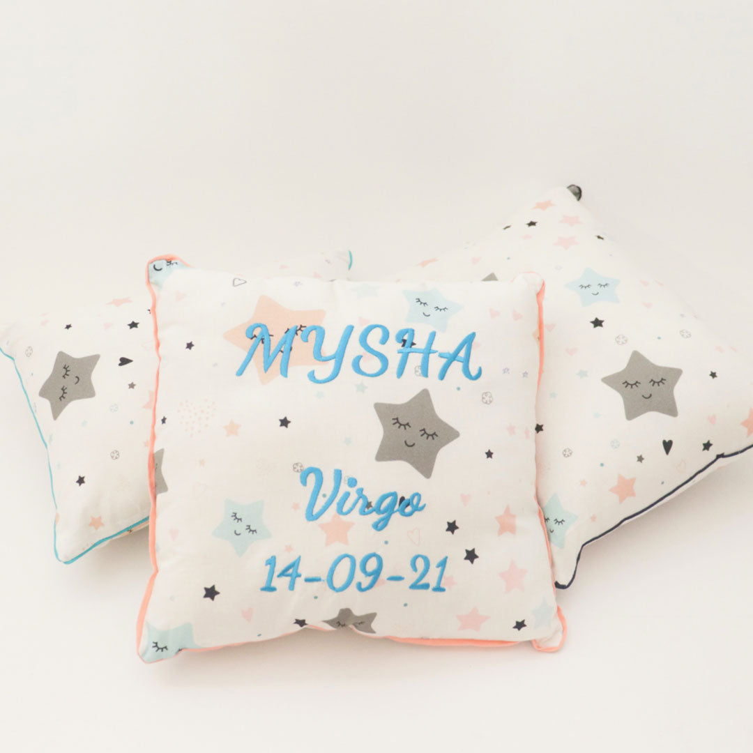 • Personalised Twinkly Stars Birth Stats Pillow, perfect for little ones- 32 x 32 cm approx.