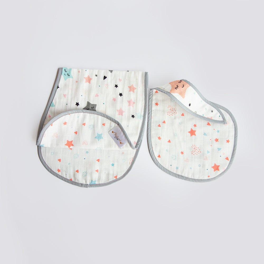- SIZE & MAKE- Three layers of Organic Cotton Muslin, Reversible & ideal for catching all the messes, Baby Bib- 37 cm long x 22 cm wide, Burpy Cloth- 60 cm long x 25 cm wide, Hypoallergenic, environment- friendly AZO free dyes, Lead & Nickel free poppers. Handmade with care in India.