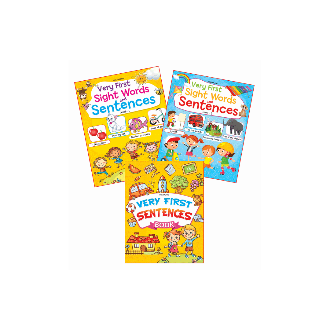 Dreamland Very First Sentence Books - (3 Titles) Very First Sentences Book – a book that helps a child read the most frequently used words that are provided in the early first grade and set them into short easy-reading sentences. Presented in a very attractive and child-friendly manner, this book will become the best companion of every little learner. Very First Sight Words and Sentences – a set of two books suitable for children aged 4+. Sight words are those words that are most commonly used in speech and writing. This set is supported with colourful pictures and simple sentences that help kids spot the sight words and build confidence with early literacy skills.