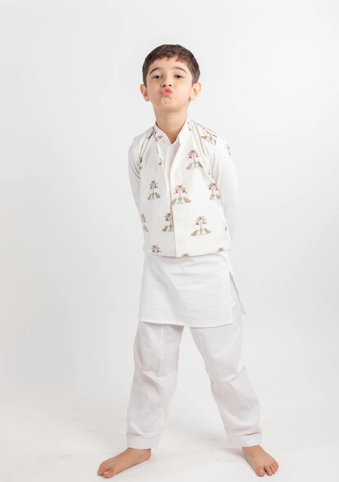 White Bird Kurta, Jacket And Pyjama Set-3 Pc