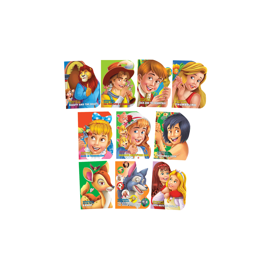 Fairy tales always delight children. ‘Wonderful Fairy Tales Pack’ is a set of ten titles that include Cinderella, Snow White and the Seven Dwarfs, Alice in Wonderland, Little Red Riding Hood, Sleeping Beauty, Peter Pan, Jack and the Beanstalk, Pinocchio, Pied Piper of Hamelin, and The Jungle Book. • Ideal for age-group 3-8 • Ten books of 16 pages each • Cute cover design • Colourful presentation • Great gift This wonderful collection of ten fairy tales retold in simplified language on large print format adorned with captivating illustrations make it more interesting for young readers. This fairy tales pack makes an excellent addition to any children’s library and a great gift for early readers.