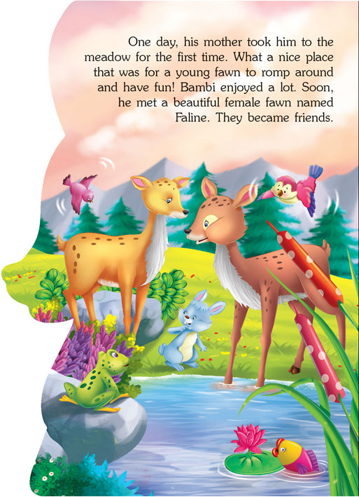 An all-time favourite ‘Bambi’ is a story of a little fawn whose life changed in one brief moment. ‘Wonderful Story Book – Bambi’, this beautifully illustrated die-cut book makes an excellent first-read for beginners. • Reading age 2 - 5 years • 12 pages • Beautiful colourful illustrations • Printed on durable board • Attractive die-cut presentation This timeless tale of a young deer with an attractive look is bound to be a great gift and treasured by young readers.