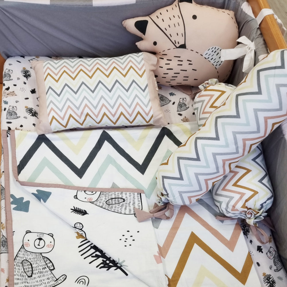 You only want the best for your baby, which includes the bedding they sleep on for many hours a day. Children’s bedding should be bright and sweet just like the little ones who use it. Without sacrificing style or quality, we've curated a batch of bedding that will offer comfort through all the excitement of childhood. If you're looking for children's bedding for a new arrival, our crib bedding sets are perfect to get started with. Our children's bedding have perfectly matched sets comprising of  100% muslin organic cotton fitted sheets ( Fits mattresses 27.5(W) x 55"(L) (70 x 140cm) upto 6" deep), 1 100% organic cotton pillow with filler ( 9" Width by 12" Length), 2 100% organic cotton bolsters with fillers ( 14" circumference by 18" Length), 1 100% organic dohar blanket (40" Width by 40" Length) and an organic plush pillow to create a playful look in your child's room. Don't forget to finish the look with our adorable throw pillows which are so cuddlesome. This lightweight and breathable set is just what you need for the modern nursery. Some would say it's love at first cuddle. Give the gift of sweeter dreams to your bundle of joy ! One super-soft crib sheet, one pillow, two bolsters, one plush pillow and one baby blanket make for a beautifully loving gift.