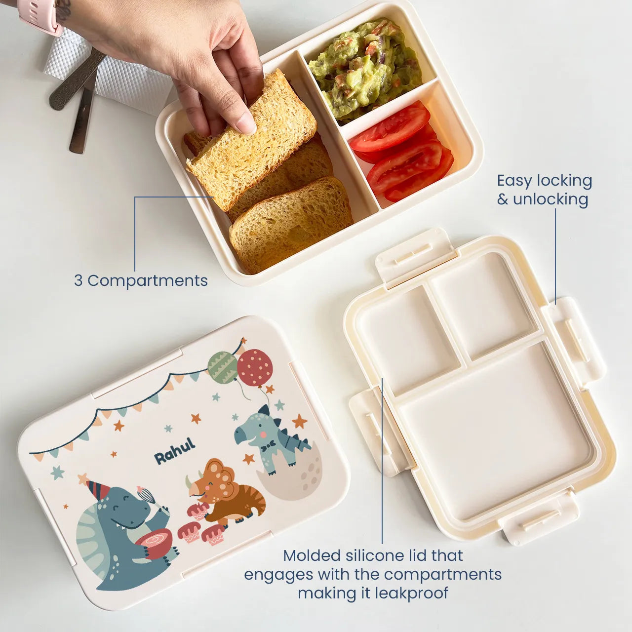Make mealtime fun and hassle-free with our Personalized Lunch Box, made from high-quality, BPA-free plastic and designed with three built-in compartments for easy storage and organization of meals and snacks. Choose from 20+ unique designs and personalize it with a name on top, creating a one-of-a-kind rectangular bento lunch box that kids will love. Lightweight and durable, it’s perfect for school, classes, travel, or on-the-go snacking. It’s also a thoughtful addition to birthday return gift hampers and easy for little ones to carry. Customize your lunch box today and make every mealtime extra special! Do Not Microwave.